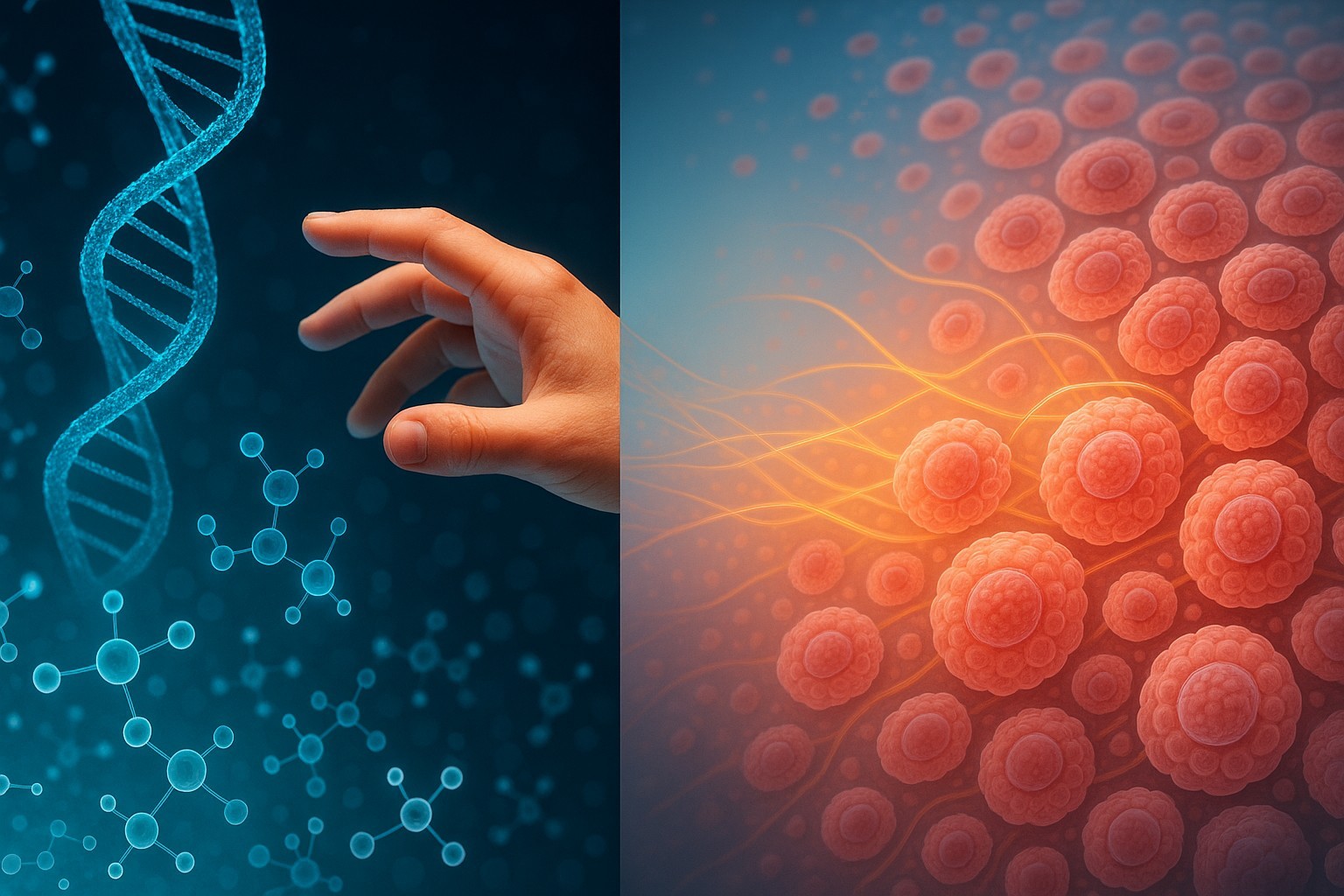 A beautiful, semi-abstract image of DNA unraveling — but instead of coding genes, it blossoms into spontaneous multicellular structures.