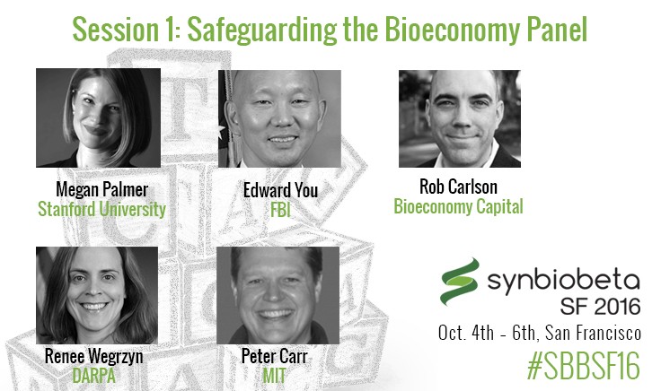As we live in an ever-changing world, there’s no better time to bring to the forefront the responsible practices of the biosecurity community around keeping the technologies being developed by the synthetic biology industry both secure and protected from a biosafety, biosecurity and economic security point of view. During the Biosecurity Panel discussion at the upcoming SynBioBeta SF 2016 conference attendees will be fortunate enough to hear from four distinguished leaders in the field of biosecurity: Edward You of the FBI, Renee Wegrzyn of DARPA, Peter Carr of MIT, and Rob Carlson of Bioeconomy Capital.Hailing from sectors across academia, industry, and government, the four panelists will discuss challenges and paths forward for the synthetic biology industry from the point of view of biosafety, biosecurity, and economic security. The panel will take place on October 4th and will be moderated by Dr. Megan J. Palmer of the Center for International Security and Cooperation at Stanford University. In addition to her expertise in security, Dr. Palmer also served as Deputy Director of policy-related research programs at the Synthetic Biology Engineering Research Center and is sure to lead a compelling panel discussion.Read on to get a sneak peek of this exciting group of panelists, their diverse backgrounds, and their place in the world of biosecurity.Edward You of the Federal Bureau of InvestigationEdward You holds the position of Supervisory Special Agent in the Biological Countermeasures Unit of the Weapons of Mass Destruction Directorate. Previously he served on the Los Angeles Field Office Joint Terrorism Task Force and Hazardous Evidence Response Team. Prior to joining the FBI, Mr. You conducted research on retrovirology and human gene therapy at University of Southern California.His duties at the FBI include creating and coordinating countermeasures to biological threats as well as identifying future potential biosecurity challenges. Among future sources of biosecurity challenges on his radar include synthetic biology and big data in the life sciences. Mr. You also currently serves as a member on The National Academies’ Forum on Synthetic Biology and Forum on Microbial Threats.Renee Wegrzyn of the Defense Advanced Research Projects AgencyDr. Renee Wegrzyn is a program manager at in the Biological Technologies Office of DARPA. She previously worked for Booz Allen Hamilton as a Senior Lead Biotechnologist. She has expertise in a wide range of biosecurity issues, including biodefense, biosecurity, disruptive technologies, emerging infectious disease, neuromodulation, and synthetic biology.Dr. Wegrzyn received her Ph.D. and B.S. in Applied Biology from Georgia Institute of Technology. Thereafter she served as an Alexander von Humboldt postdoctoral fellow in Heidelberg, Germany. Her interests include leveraging synthetic biology to remain a step ahead of infectious diseases and bolster biosecurity more generally.Peter Carr of Massachusetts Institute of TechnologyDr. Peter Carr is a Senior Scientist in the MIT Lincoln Laboratory. His research there focuses on the use of synthetic biology to expand the boundaries of living systems. Dr. Carr specifically researches tools and methods for rapid prototyping of genetic designs, as well as for risk evaluation and defense in the area of biosecurity. He is interested in the application of engineering principles to biological systems that constitutes the synthetic biology industry.After receiving a B.S. in Biochemistry from Harvard, Dr. Carr received his Ph.D. in Biochemistry and Molecular Biophysics from Columbia University and served as a postdoctoral fellow at the Whitehead Institute. His past successes include a collaboration with George Church, founder of Gen9, on a technology that is capable of rewriting segments of an organism’s entire genome.Rob Carlson of Bioeconomy CapitalRob Carlson is the managing director of Bioeconomy Capital and a principal at Biodesic LLC, a biological engineering, consulting, and design firm. Mr. Carlson is renowned for his work on technical and economic metrics for the development of the biotechnology industry. He is the theoretician and namesake behind what is now known as the Carlson Curve, which predicted that the doubling time for cost and performance of DNA sequencing technology would at least match Moore’s law.Mr. Carlson has served as a biosecurity consultant to various corporations, domestic and international governments, the United Nations, and the World Health Organization. His current interests include assessing the size of the bioeconomy in order to determine what ought to be defended and from whom. He sees the acceleration in synthetic biology research as being supportive of our ability to promote sound biosecurity measures.“Synthetic biology has definitely contributed to our ability to do good, in particular by accelerating the pace and capability to develop means of detection, understanding, and response,” Carlson said. “It is still early days, to be sure, but we are on the cusp of a complete revolution, first in how we design and build biological systems, and second how those systems are used in manufacturing and in the broader economy. As these capabilities mature, they will dramatically improve our ability to respond to threats from wherever, and whomever, they might arise.”Be sure to attend SynBioBeta SF 2016 this October to hear from these distinguished speakers about ‘Safeguarding our Bioeconomy’ at the South San Francisco Conference Center on October 4th.