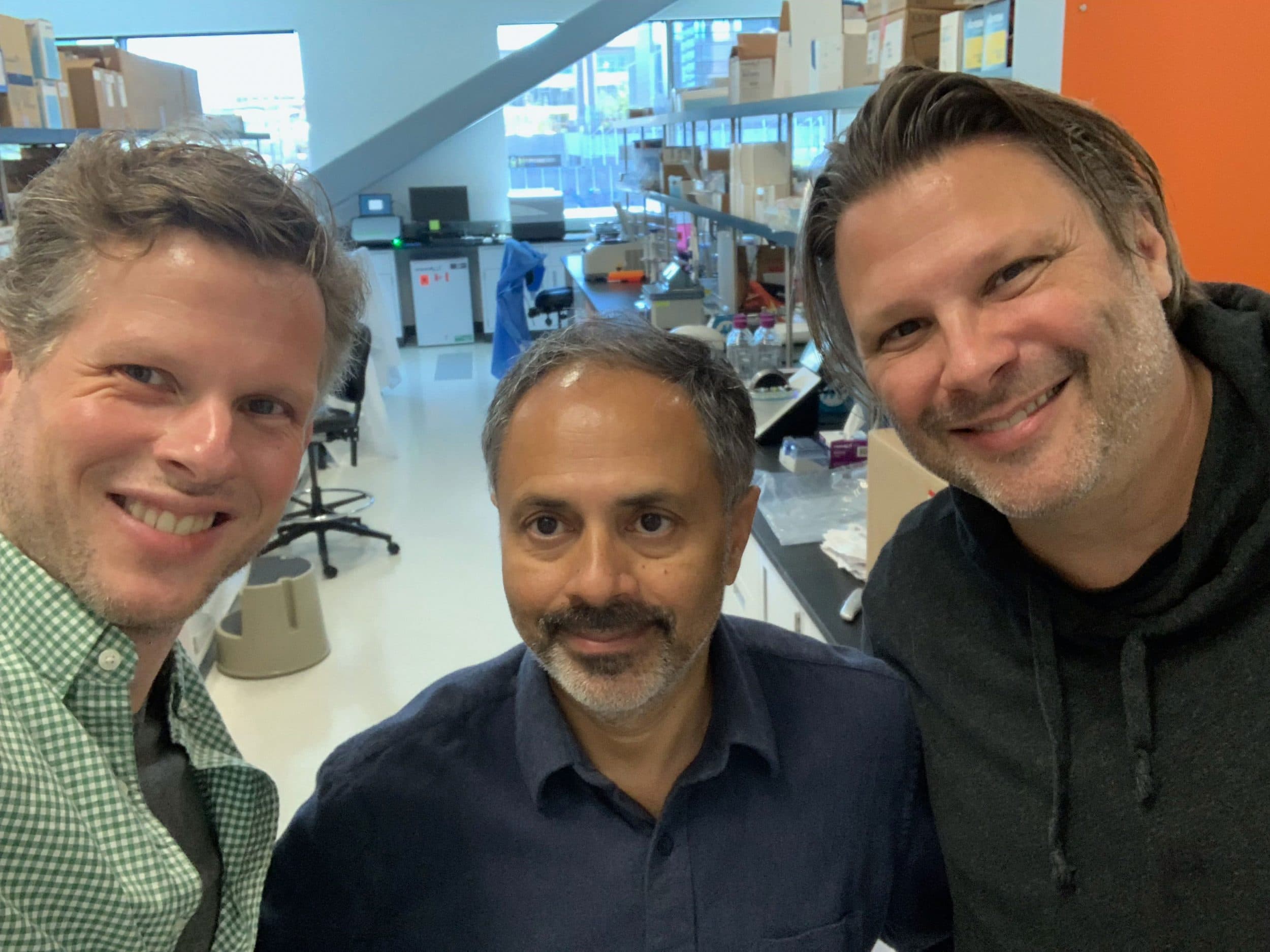 Earli's co-founder and CEO, Cyriac Roeding (L) and co-founder and Chief Scientific Officer Dr. David Suhy (R) with the late Dr. Sam Gambhir, former advisor and board member. (Photo: Business Wire)