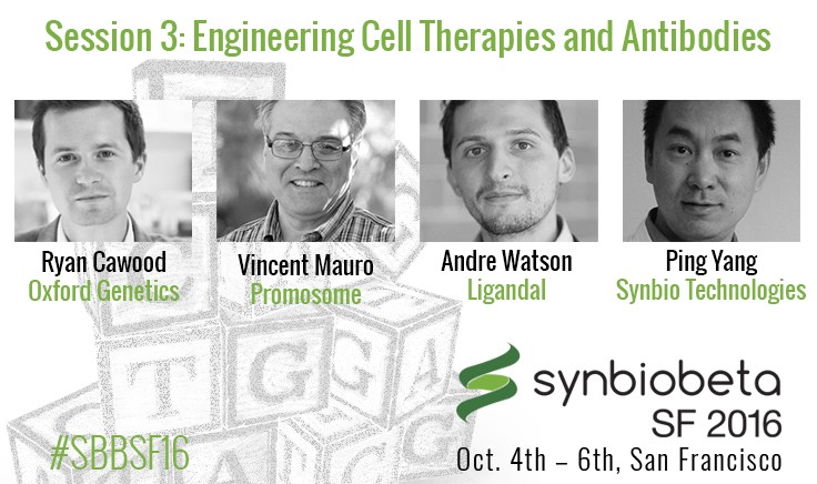 Everybody has been hearing that we are transitioning into an age of personalized medicine, but what does that really mean? In this session, titled “Engineered Cell Therapies and Antibodies,” four leaders in the field, Dr. Vincent Mauro from Promosome, Dr. Ping Yang from Synbio Technologies, Dr. Andre Watson from Ligandal, and Dr. Ryan Cawood from Oxford Genetics, will describe what personalized medicine means from their perspective and how their companies are facilitating that transition.Personalized medicine is the precise determination of a particular ailment for a particular individual coupled with a customized treatment for said ailment and individual. There are several approaches to achieve this goal, however this session is specifically centered on the technologies that allow the body itself to fight off diseases. For example, immunotherapy is a hot new field whereby the immune cells are isolated from a subject, genetically modified to target specific cells or to be resistant to certain drugs, and re-injected into the subject. While the field is still young, the results have thus far been very promising. However, this technique is performed ex vivo, which presents its own set of challenges. Clinicians would like to bring the therapies closer to home using in vivo techniques, which require the development of novel technologies.In order to consider therapeutics, a framework might be helpful which outlines three key areas of technological development: targeting, delivery, and payload. Targeting has traditionally been, and still is in many cases, very non-specific. The idea was that if you blasted the body with a certain drug, hopefully a fraction of the drug would hit the target and be effective. Unfortunately, that also means that a large fraction of the drug will hit and damage other cells, causing off-target side effects. This is one of the problems that Dr. Ping Yang is tackling at Synbio Technologies. Yang states that Synbio Technologies is developing “next generation DNA technologies and the usage of these technologies to design and manufacture better antibodies.” Antibodies are small molecules that are able to bind very specifically to the particular molecules the antibodies were designed for; the production of antibodies by your immune system is typically how your body identifies foreign particles. Therefore, if you are able to identify a unique marker on the surface of a tumor cell, for example, you can develop antibodies that can specifically target that tumor cell and leave other cells alone. By focusing on improved antibody design and function, Synbio Technologies is pushing the development of a targeting system for therapeutics.The second key area of technological development is the delivery of the therapeutic. The body is a complex environment and each delivery mode has its own set of challenges, whether it be orally or intravenously. The challenge in any of these environments is how do we get the payload to the target: 1) without being detected by the immune system, 2) without being degraded or otherwise being made inert by the chemical environment of the delivery path, 3) without being filtered out by the liver or the kidneys, while making sure the payload is actually delivered when the target is reached and over the correct duration.The delivery issue is being tackled by both Dr. Ryan Cawood from Oxford Genetics and Dr. Andre Watson from Ligandal. While there are several types of delivery systems to get a payload into the cell, two stand out: viruses and nanoparticles. Oxford Genetics tends to focus on virus delivery systems, which are particularly useful for gene therapy applications. A virus can be loaded with a particular DNA segment and the associated molecular machinery to edit the gene sequence of the cell itself, or to allow the cell to express a protein product that might be toxic to the cell. However, using viruses as delivery vehicles comes with its own host (pun intended) of issues, including safety, reliability, and customizability. Nanoparticles on the other hand, the technology that Ligandal is focusing on developing, can be loaded with multiple different payloads, including gene therapies and more traditional chemical toxins. The mechanism behind the production of nanoparticles is more associated with materials science.Lastly, the third area of technological development is the payload, which is the molecule actually providing the therapy. Lots of different payloads have been developed throughout the years by different pharmaceutical companies, most of which have been broad spectrum drugs and toxins. However, we are moving into an age of DNA and RNA based therapies to very precisely target different disease states. This is the area that Dr. Vincent Mauro from Promosome focuses on. Promosome is designing and tweaking mRNA molecules in order to improve the expression of the gene in the delivered cell, which in turn improves the overall therapeutic efficacy of the treatment.By combining novel, synthetic biology based technologies in the areas of targeting, delivery and payload, these companies are helping to propel us forward into the age of personalized medicine by allowing us to very precisely develop therapeutics that are customizable to an individual and their particular disease state.Be sure to attend SynBioBeta SF 2016 this October to hear from these exciting companies in the Engineered Cell Therapies and Antibodies session held on October 4th.