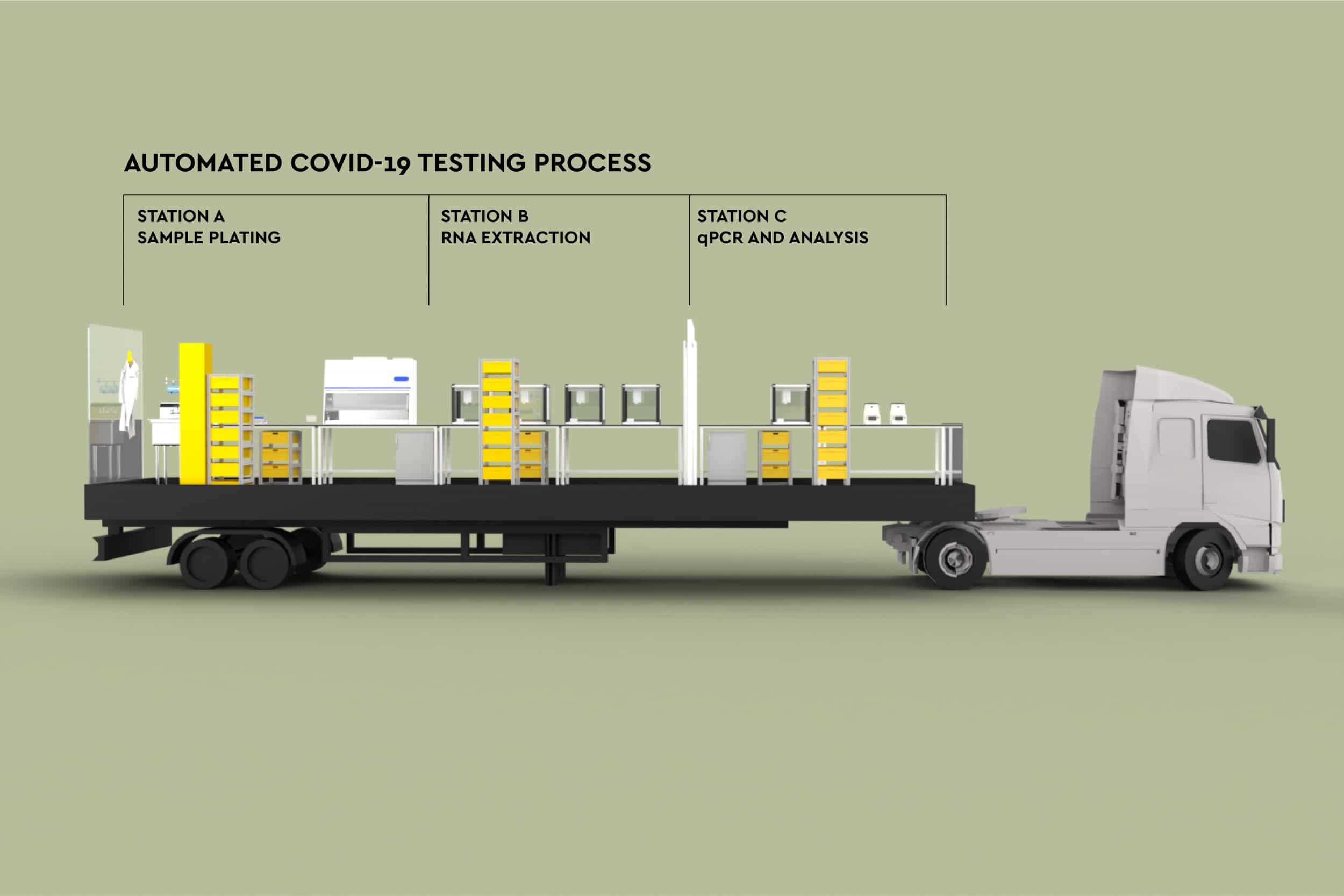 (LONDON, UK - May 21, 2020) - Scientists from OpenCell.bio and King's College London, in partnership with Opentrons Labworks, have developed a low-cost rapidly deployable COVID testing lab inside a shipping container that can process 2,400 tests per day.This is the first fully functional lab that can be immediately deployed anywhere in the world for COVID testing. The system uses low-cost liquid handling robots developed by Opentrons Labworks to perform a qPCR (the gold-standard nucleic acid detection test) to detect the presence of the SARS-CoV-2 virus.This system design is open-source and the test relies on reagents and consumables that are not single-source or proprietary. This means it is free from the supply chain restrictions faced by many COVID-19 testing labs that all require reagents from the same few suppliers. Given Opentrons ability to rapidly deploy lab automation, and the shipping container form factor of this testing lab, this system is ready to be sent wherever automated testing bandwidth is needed.