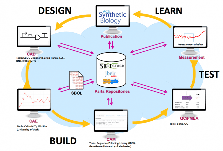 How do you represent your genetic designs? Nearly every synthetic biology company is involved in the engineering of new genetic designs. The methods used to describe and exchange designs are still mostly formats like GenBank and FASTA that were designed for interpreting the sequences of natural organisms. Engineering organisms, however, is a very different challenge.In synthetic biology, we are not just annotating existing sequences. Instead, we need to talk about biological constructs, networks, and pathways at every stage of development, from unrealized whiteboard sketch through exploration of alternatives, fabrication and testing, debugging and redesign, adaptation to requirements changes, etc. We need to be able to simultaneously reason about the structure of a possibly-incomplete sequence and also about its intended function and products, reactions or other interactions, and associated parameters, data, and models. Furthermore, we need to be able to link design information with all the other stages of the engineering cycle: how they are realized, the contexts in which they are tested, and the data that comes out of those tests to feed the next cycle of learning and design.