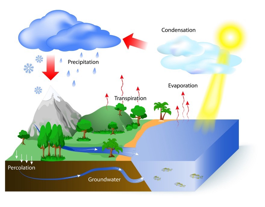 This is like listening to an ecology lecture about the water cycle and using radioactivity to trace where the water goes. Water evaporates from the surface or is transpired through plants, it condenses in the air and precipitates at a different location. Then it percolates through the soil, gets into the groundwater and the oceans or large water bodies. Then the cycle goes on. Of course, there was one big difference, I was not a passive student listening to a lecture. I was in the story with the other people and real consequences.